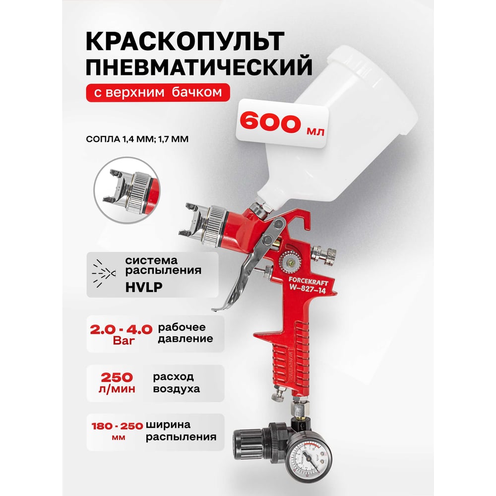 Краскораспылитель с регулятором давления и дополнительной дюзой Forcekraft FK-W-827-14(51348)