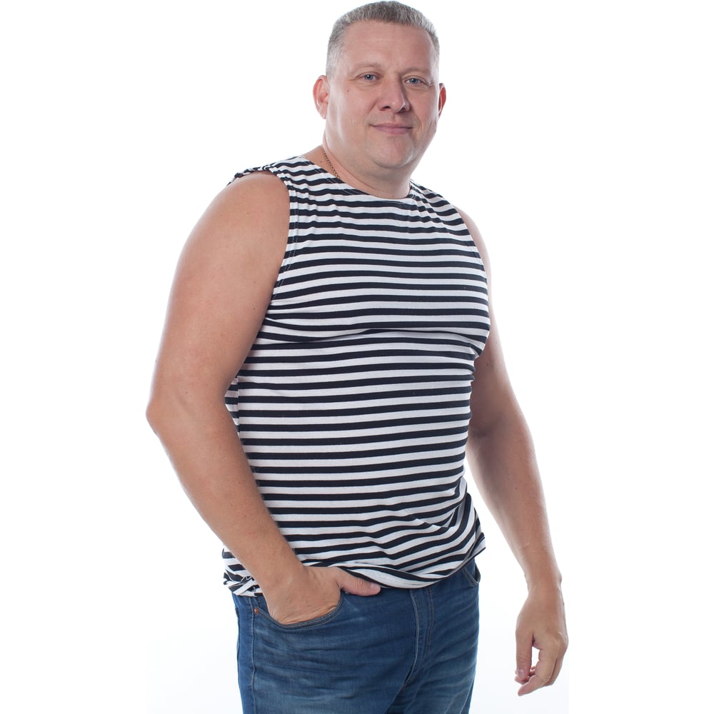 Армейская тельняшка без рукавов, 100% хлопок БЕРТА (черная полоса) 703ч-48-50