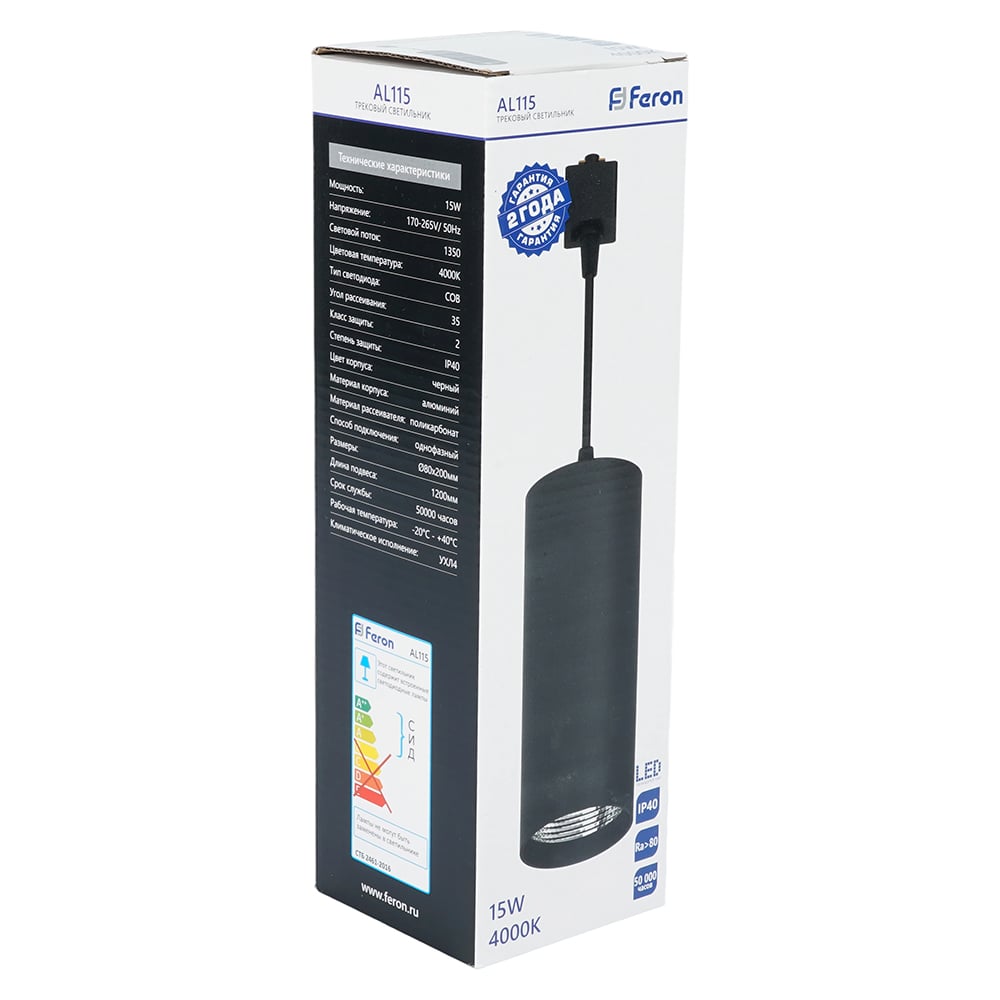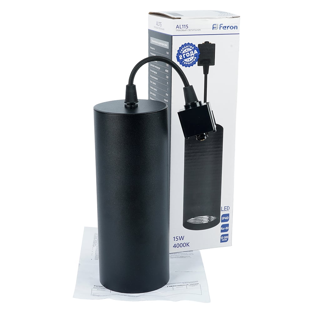 Светодиодный светильник FERON AL115 на подвесе 15W 4000K черный 80x200 41900