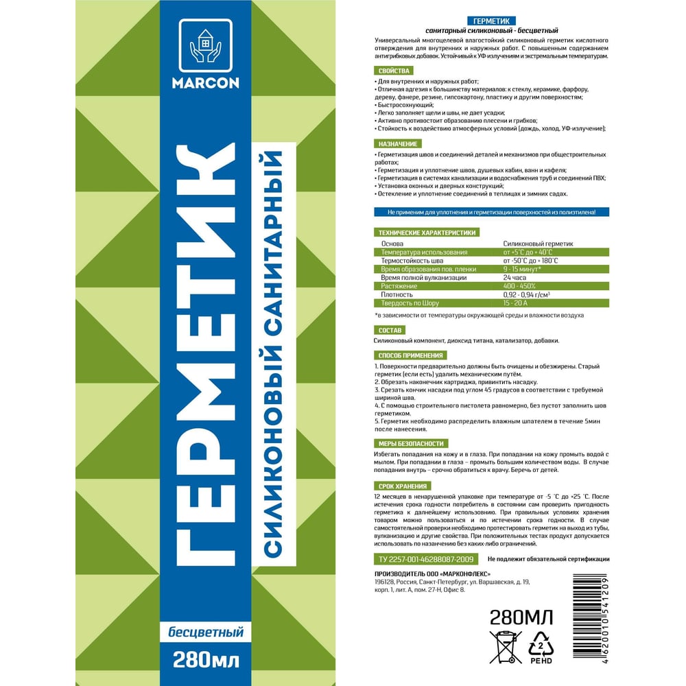| Тип герметика | силиконовый |