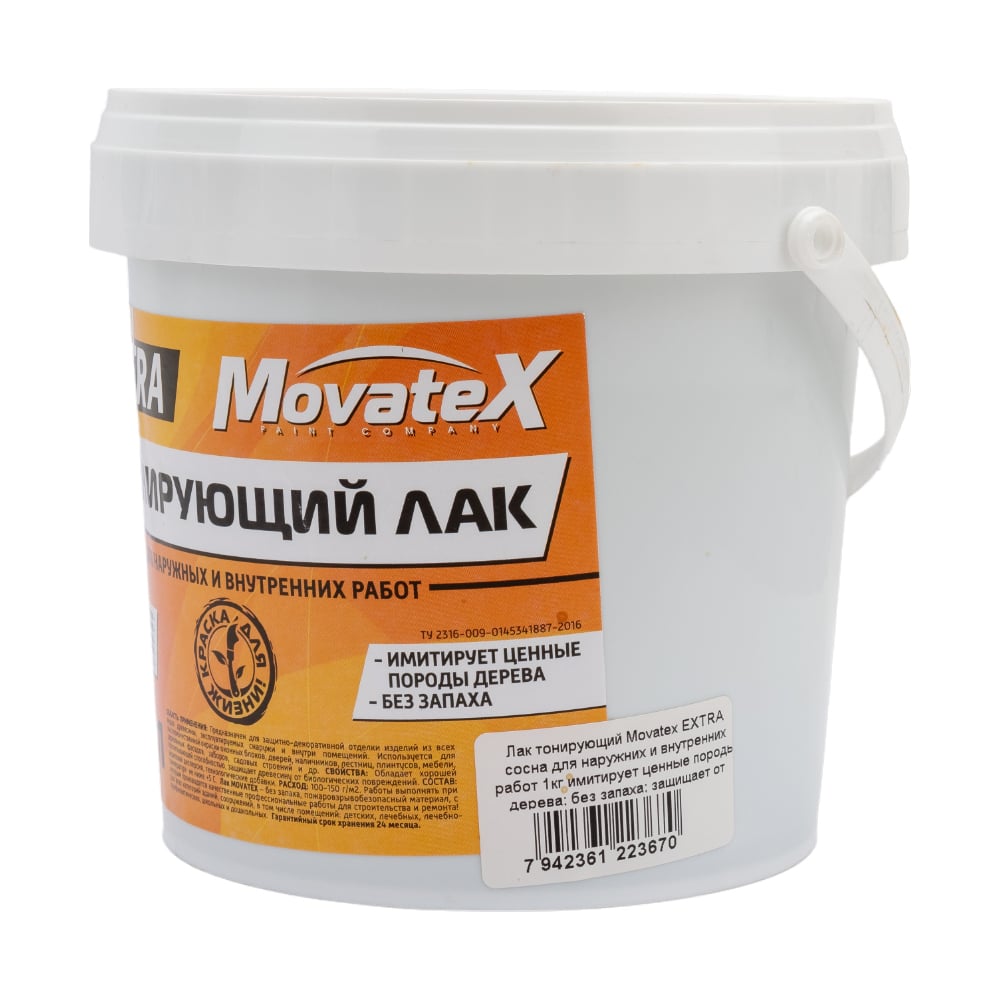 Тонирующий лак Movatex EXTRA сосна, для наружных и внутренних работ, 1 кг Н00050