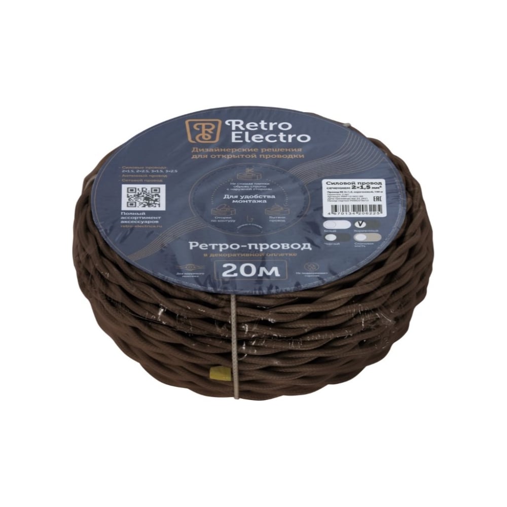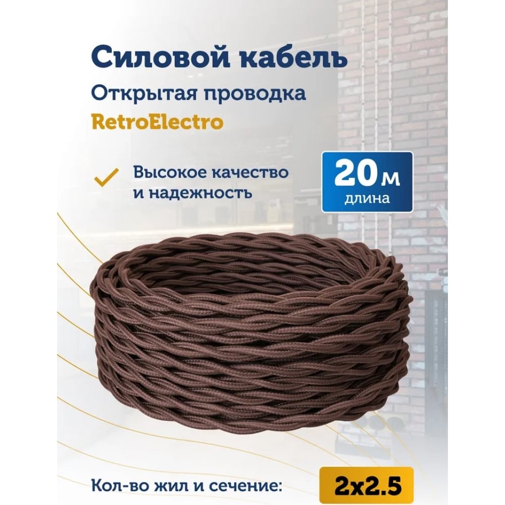 Силовой кабель Retro Electro ретро, 2х2,5, коричневый, длина бухты 20 2254730
