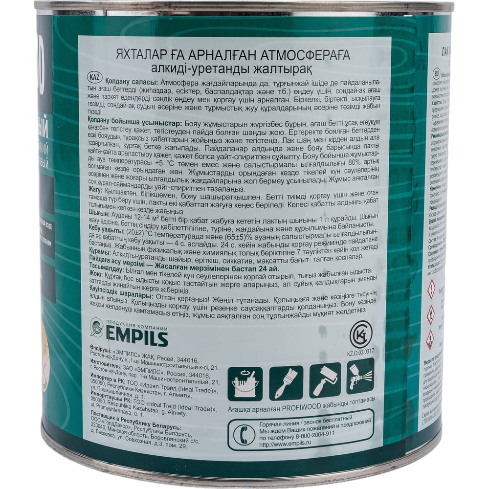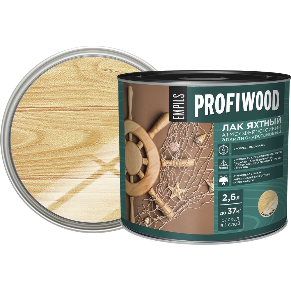 Алкидно-уретановый яхтный лак PROFIWOOD (атмосферостойкий; глянцевый; 2.6 л; 2.4 кг) 62103