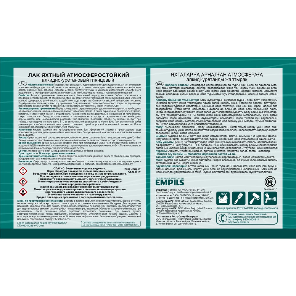 Атмосферостойкий алкидноуретановый яхтный лак Profiwood 62103