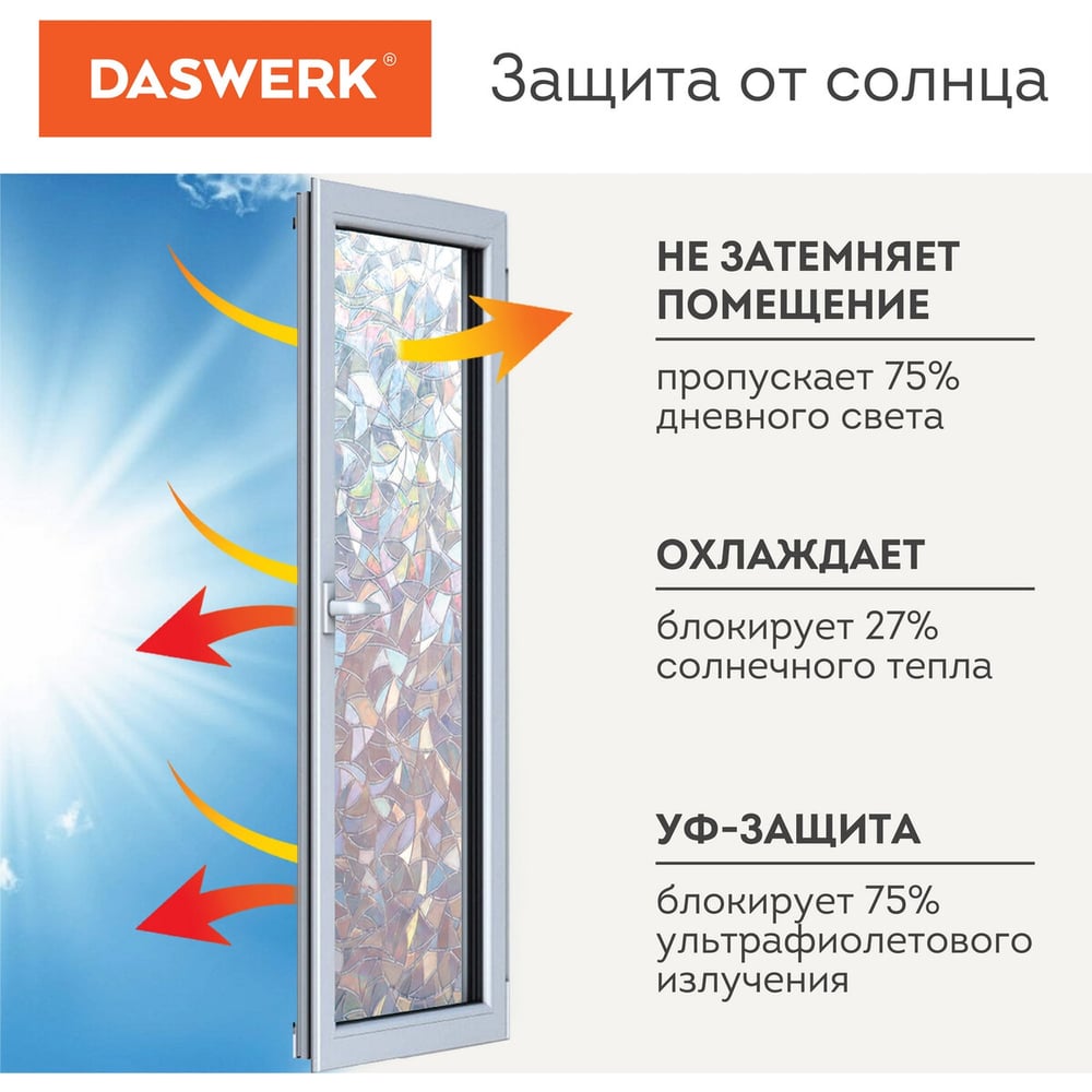 Самоклеящаяся статическая пленка на окно DASWERK Витраж без клея, солнцезащитная, 67.5x150 см 607969