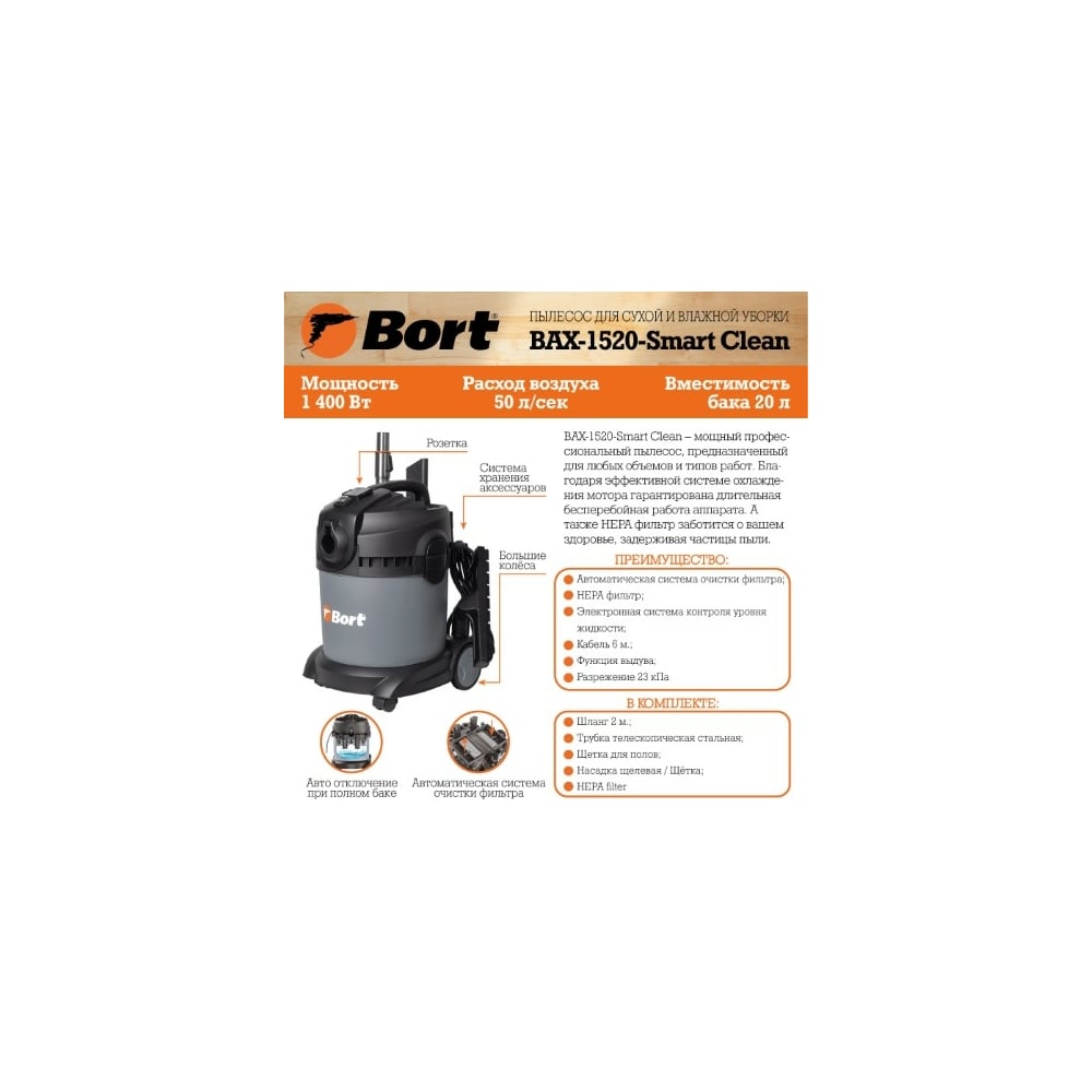 | Модель пылесоса | BAX-1520-Smart Clean |