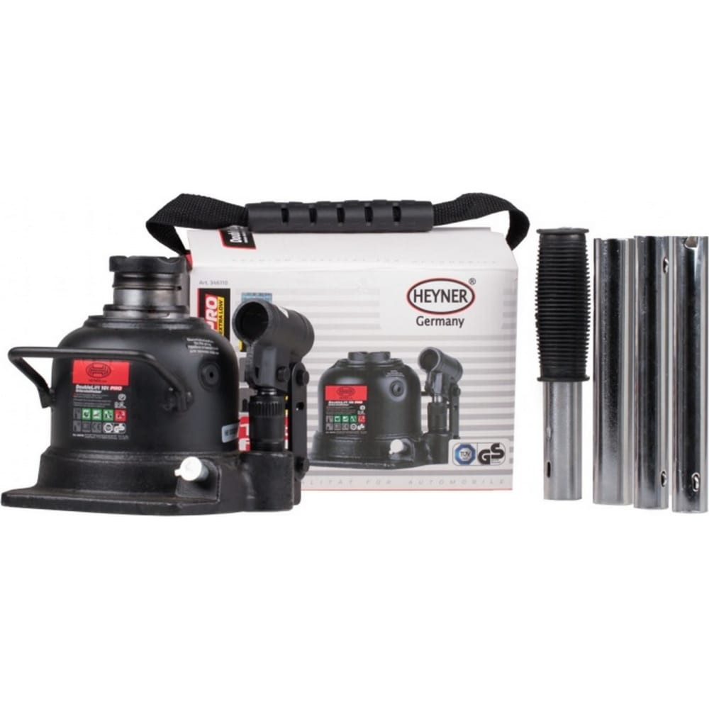 Двухступенчатый низкопрофильный бутылочный домкрат Heyner Премиум 346110