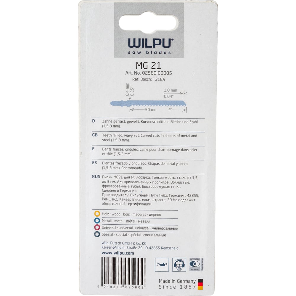 Пилка по металлу MG 21 5 шт. WILPU 256000005