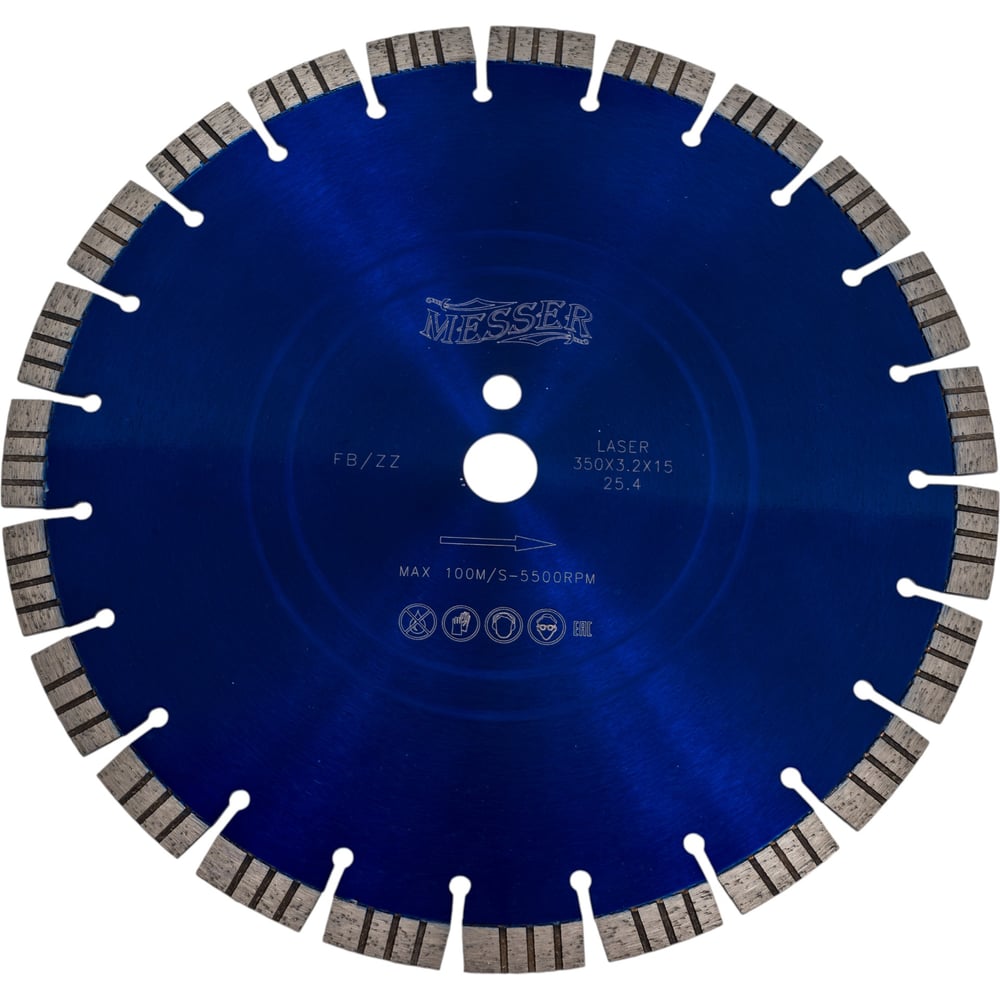 Турбосегментный алмазный диск по железобетону MESSER 350D-3.2T-15W-24S-25,4 01-16-352