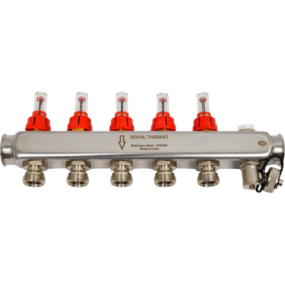 Коллектор в сборе Royal Thermo нержавеющая сталь, с расходомерами 1 ВР-3/4 НР, 5 выходов НС-1080951