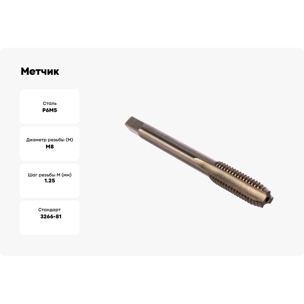 Метчик маш-руч. М 8х1.25, Р6М5, для г/о исп.1, H2 ТехноСталь t165035