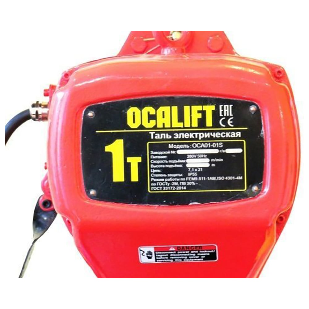 Цепная стационарная электрическая таль OCALIFT 01-01S г/п 1Т, высота 4,5м, 380в, на крюке OCA0101SN45m