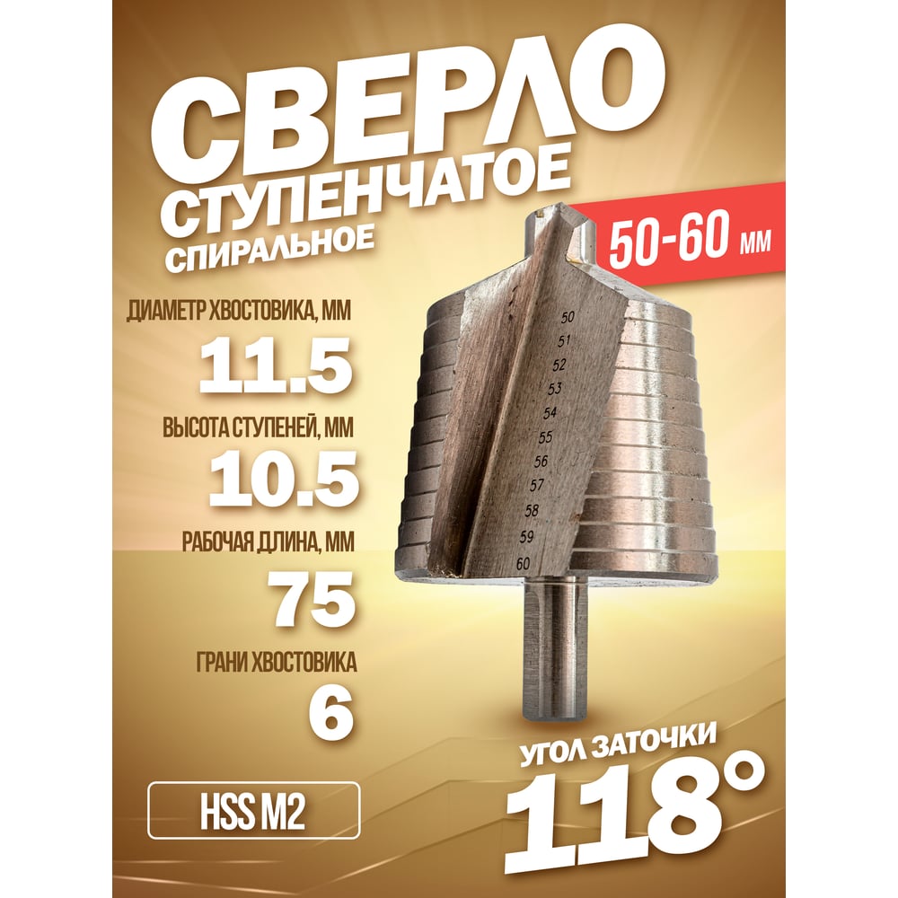 | Диапазон диаметров ступенчатых сверл | 50-60 мм |