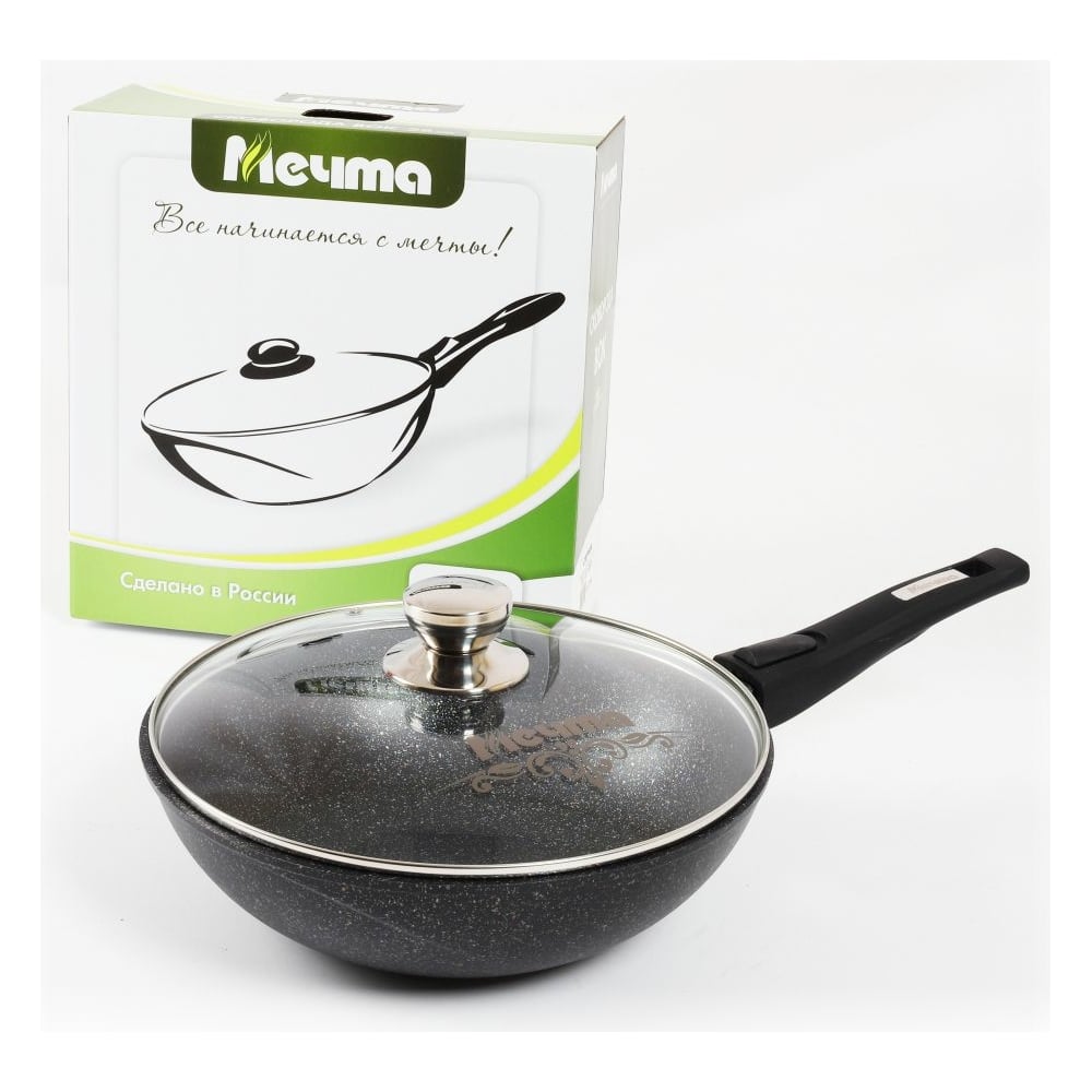 Сковорода ВОК Мечта АП Гранит star 28 см, со съемной ручкой и стеклянной крышкой с078803