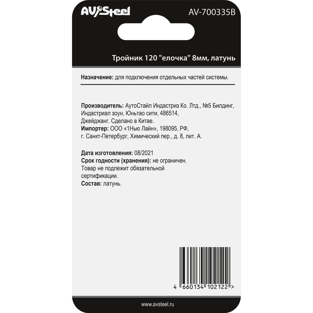Тройник Y-образный елочка 8мм, латунь, в блистере AV Steel AV-700335B