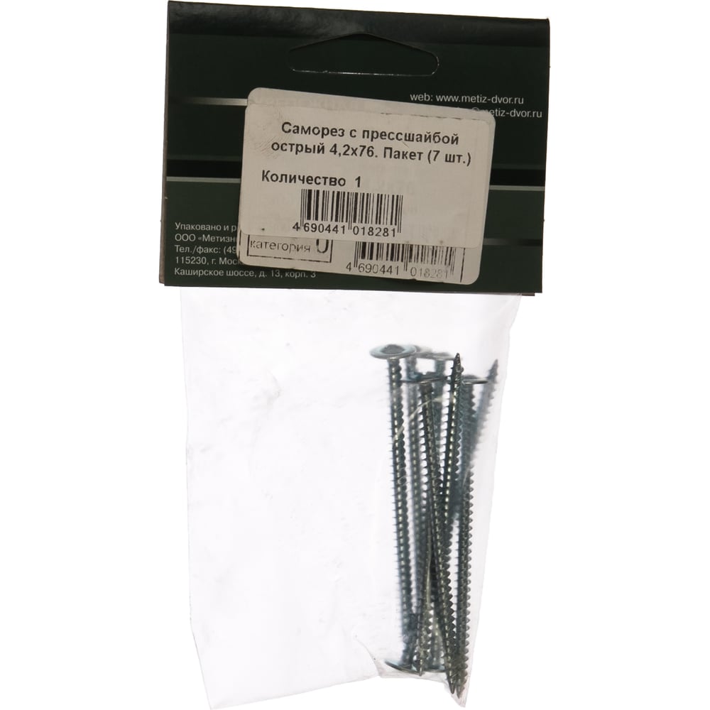 Саморез с прессшайбой Метизный двор острый 4,2x76, 7 шт. 4690441018281