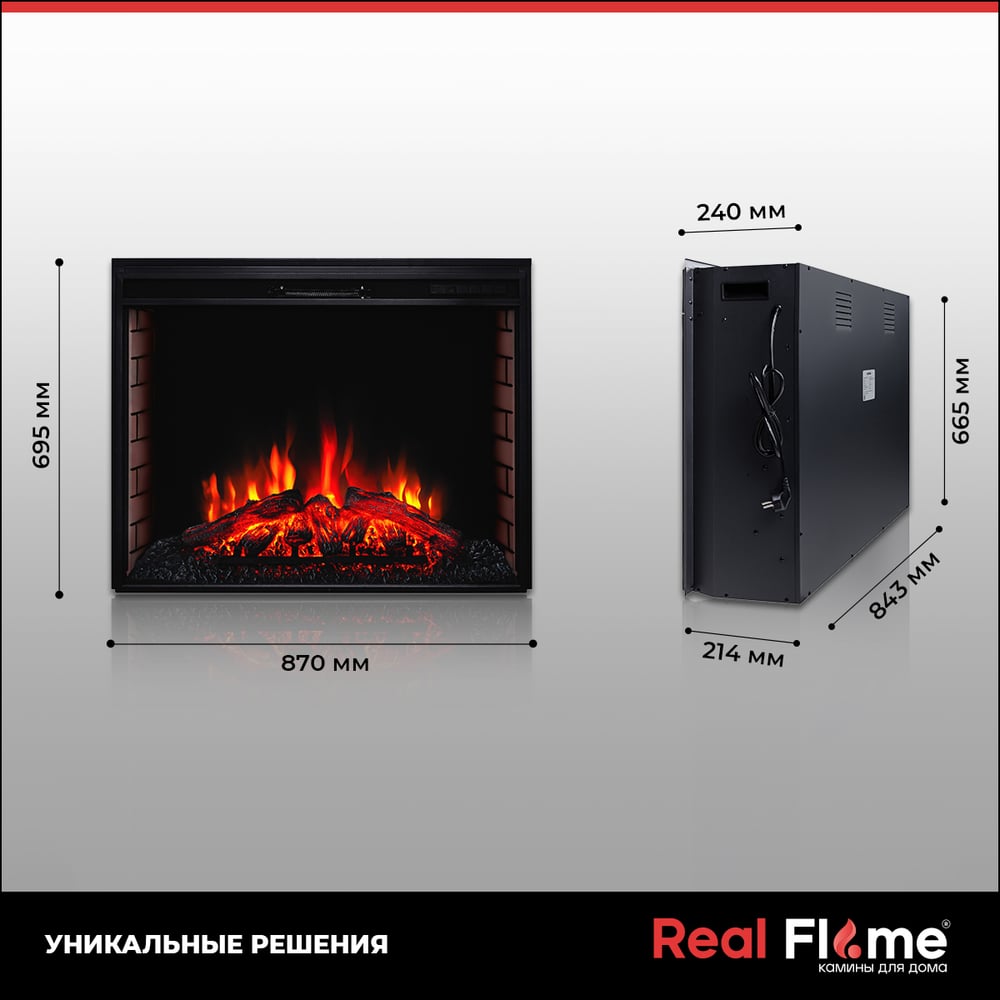 Габариты без упаковки 695х236х870 мм Высота 695 мм Материал металл, стекло Ширина 870 мм Цвет черный Тип фронтальный Тип диодный Вес нетто 30 кг Серия Epsilon Установка встраиваемый Напряжение 220 В Глубина 240 мм Термостат нет Материал рамки металл Вентилятор да Управление дистанционное Мощность 2 кВт Парогенератор нет Эффект живого огня есть 3D-эффект нет Звуковой эффект потрескивание Способ излучения тепла односторонний С обогревом есть Эффект топлива дрова