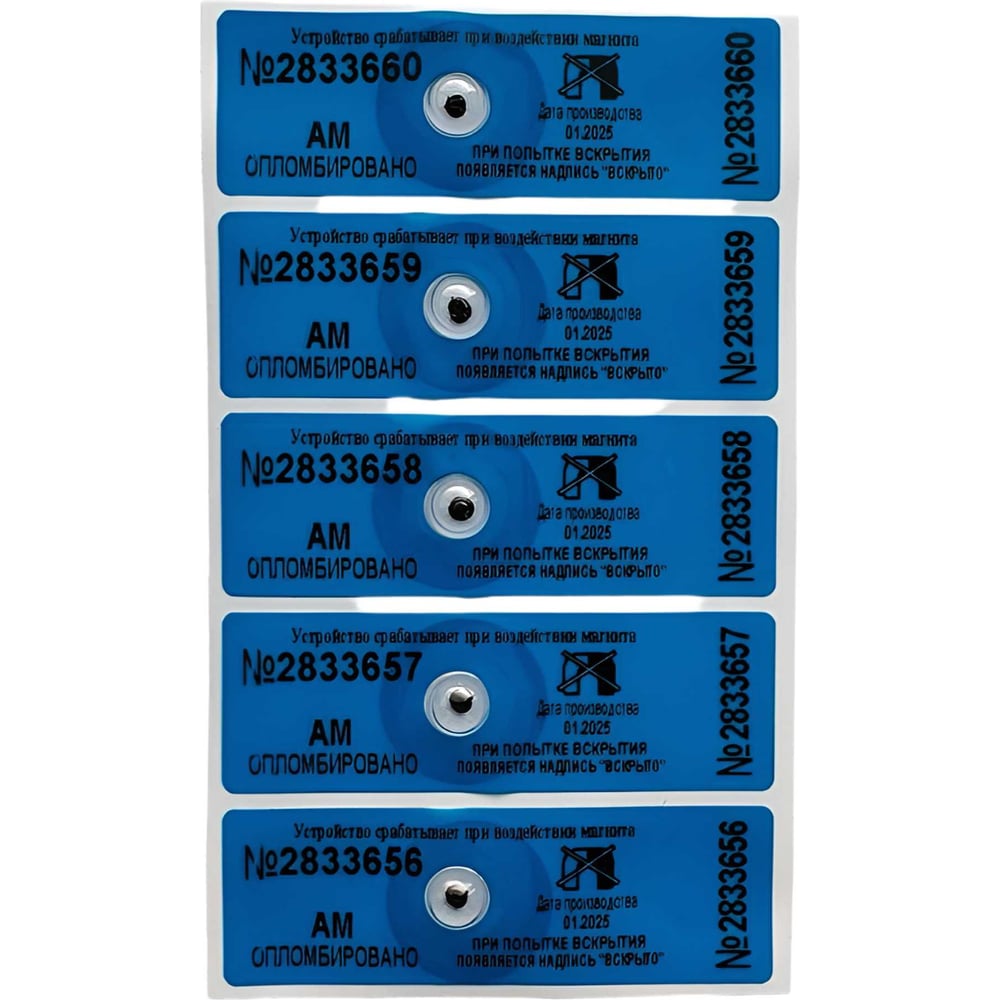 Антимагнитная пломба - наклейка ТПК Технологии Контроля 22x66 АМ (синие) 70 мТл 100 шт. 24166