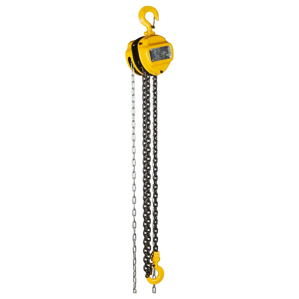 Габариты без упаковки 455х143х183 мм Вес нетто 24 кг Грузоподъемность 3000 кг Высота подъема 3 м Усилие 39 кг Длина цепи 3 м Рычажная нет Min расстояние между крюками 455 мм Диаметр цепи 10 мм