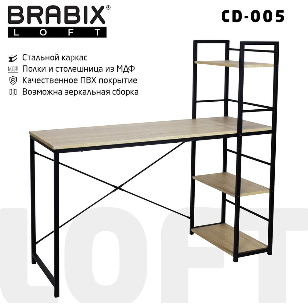 Стол на металлокаркасе BRABIX LOFT CD-005 дуб натуральный 641223