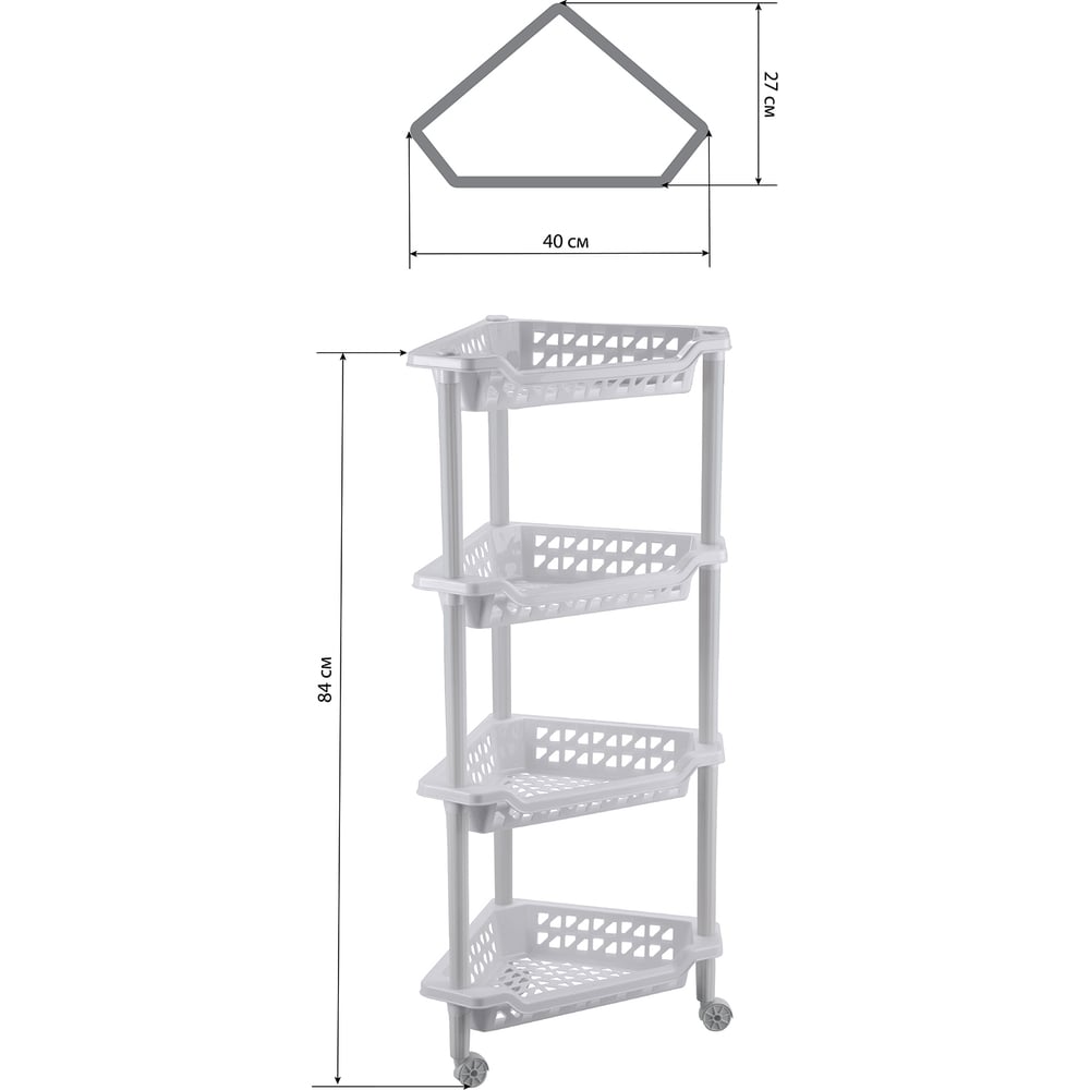 Угловая этажерка Бытпласт Тереза 4 полки 400х270х840 мм светло-серый 431242130