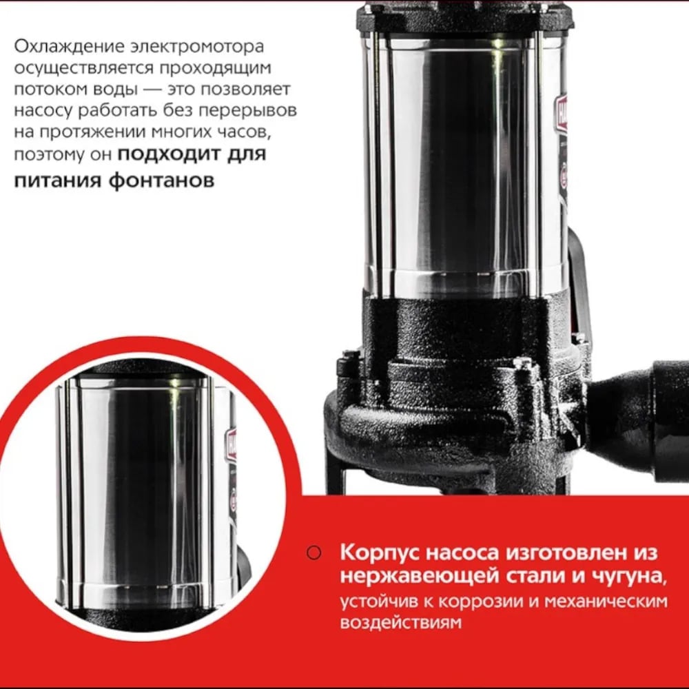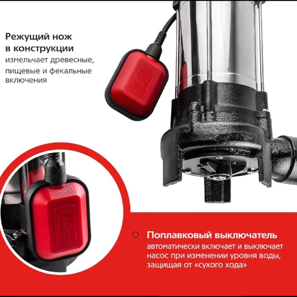 Фекальный насос Hammer NAP1100FD 16000л/ч, высота 8,5м, с ножками для измельчения 641202