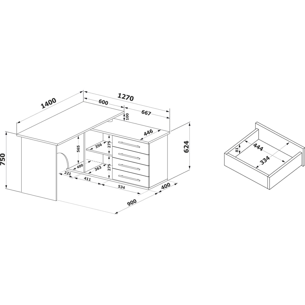 Компьютерный стол СОКОЛ правый дуб делано КСТ-109П 00-00009446