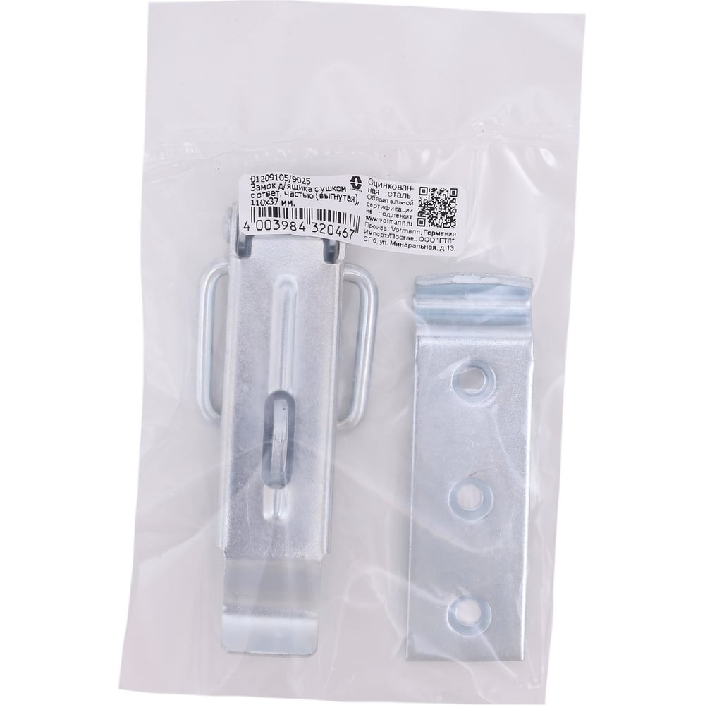 Замок для ящика VORMANN с ушком, с выгнутой ответной частью 110х37 мм, оцинкованный 01209105/9025