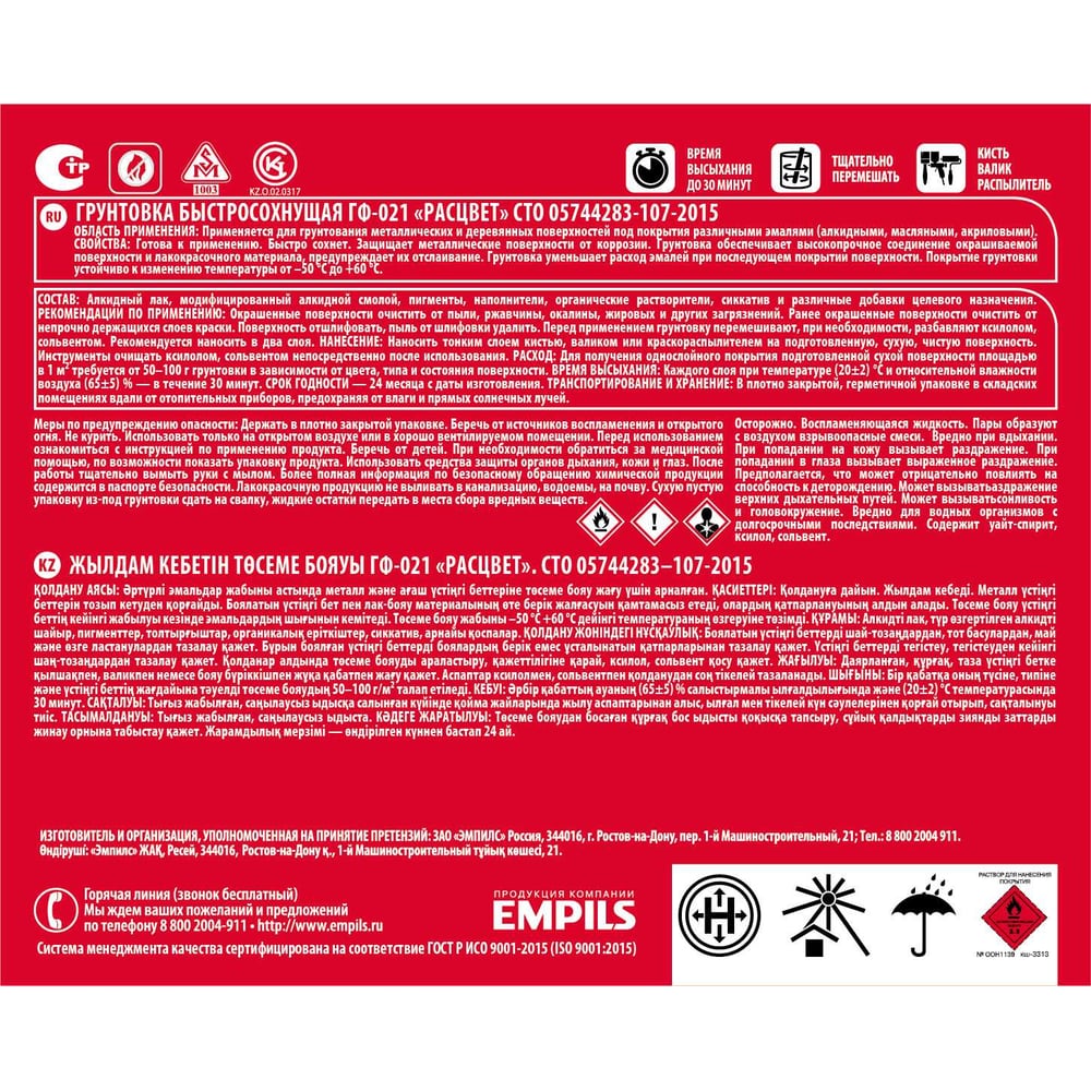 | Время полного высыхания | 0.5 ч |