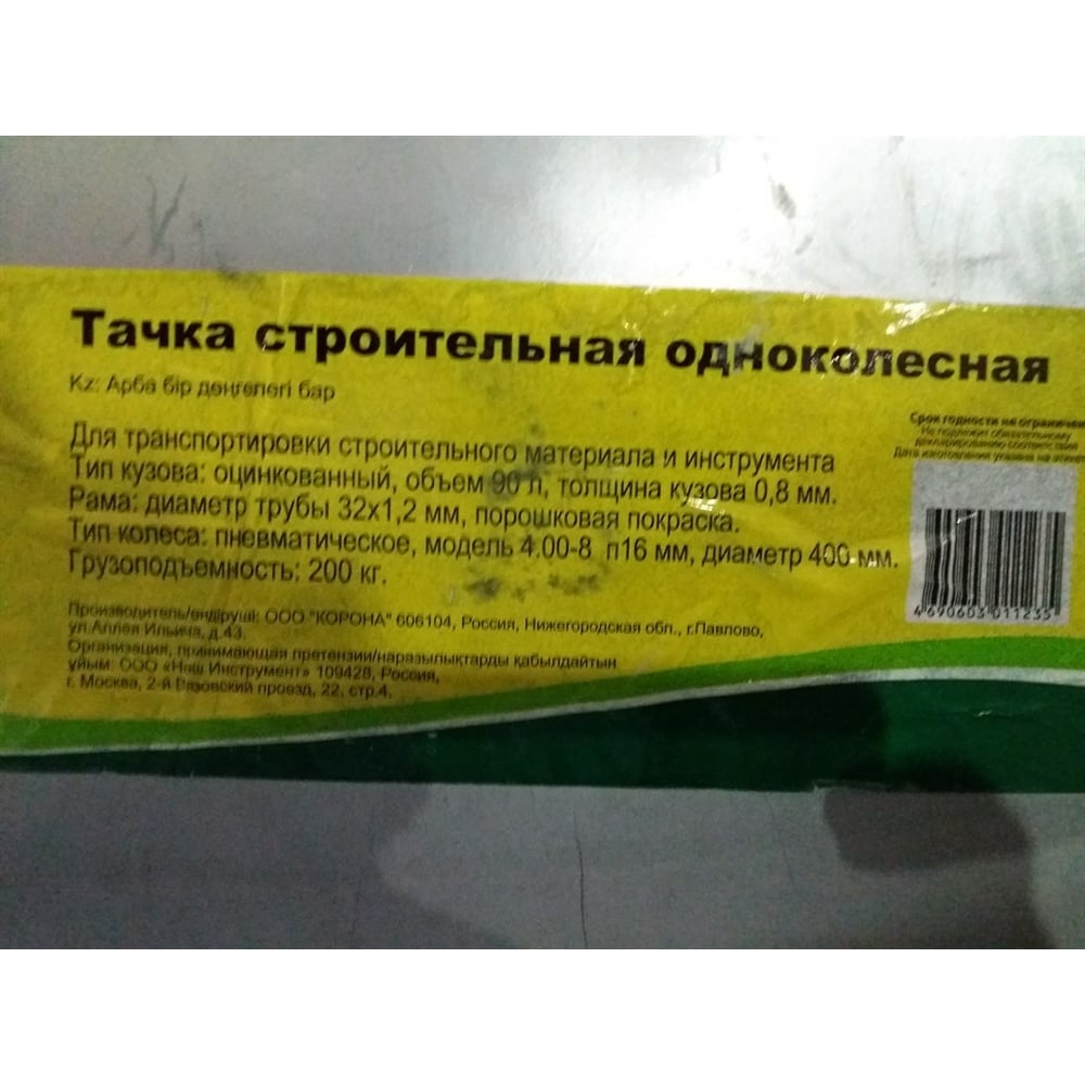 Строительная тачка Yard одноколесная, грузоподъемность 200 кг, объем 90 л 66-9-180