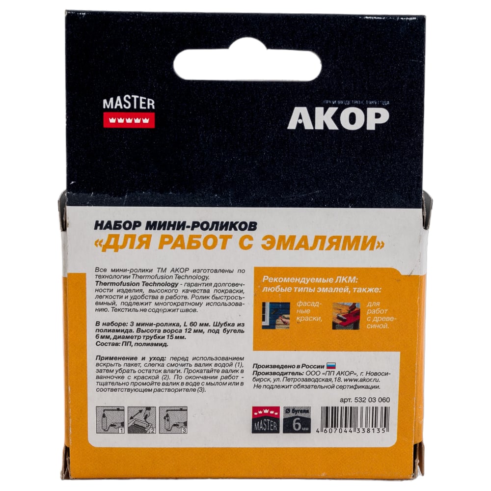 Ролик Акор мини д/валика, полиамид, д/водных лаков, нитроэмалей, 60 мм 3шт 900-60-3