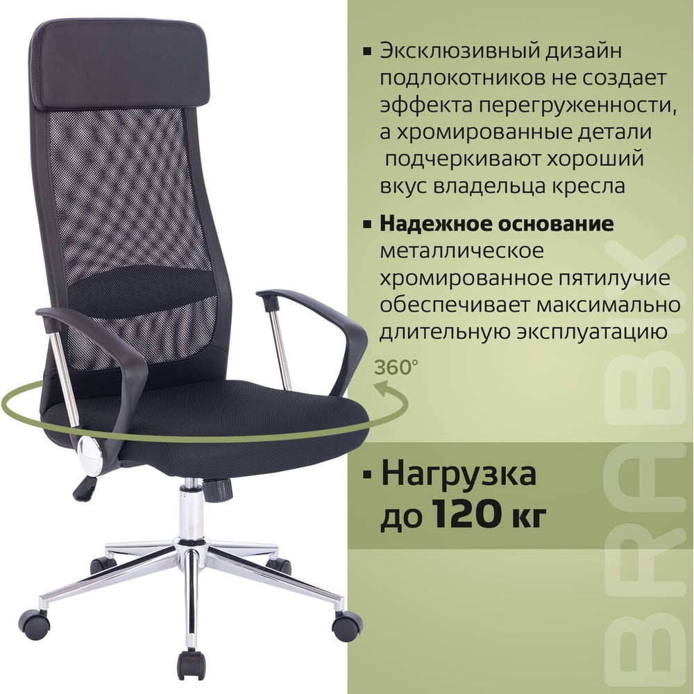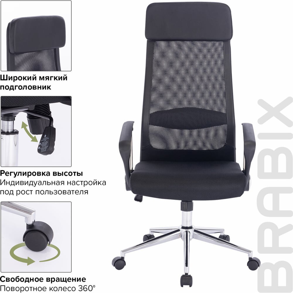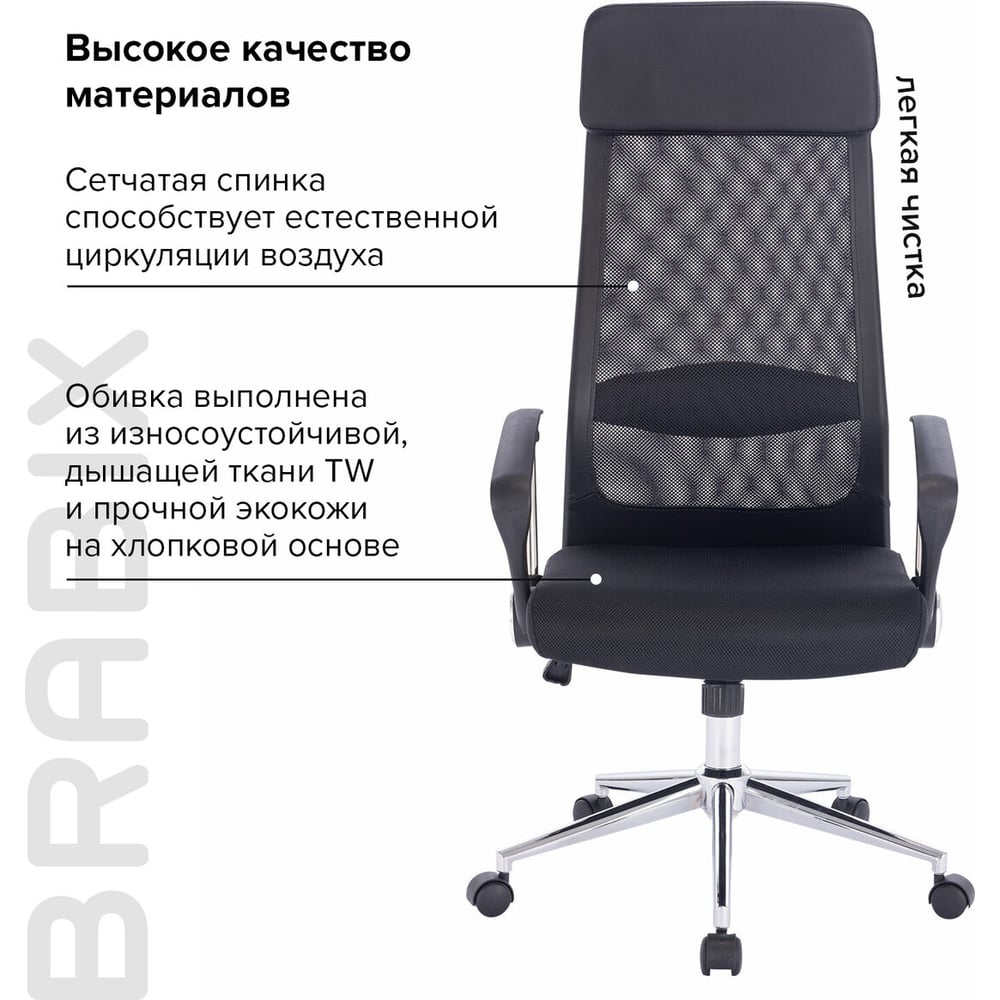 Офисное кресло BRABIX Flight R EX-541, хром, ткань TW, сетка, черное 532517