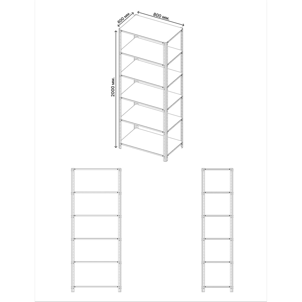 Габариты без упаковки 2000x800x600 мм Высота 2000 мм Материал сталь Покрытие порошковое Ширина 800 мм Цвет серый, зеленый Вид стеллаж Класс товара Бытовой Установка напольный Глубина 600 мм Конструкция стационарный Сборные нет Max нагрузка на полку 100 кг Кол-во полок/ярусов 6 шт Шаг регулирования высоты полки 25 мм Вес стеллажа 17.5 кг Безболтовые нет