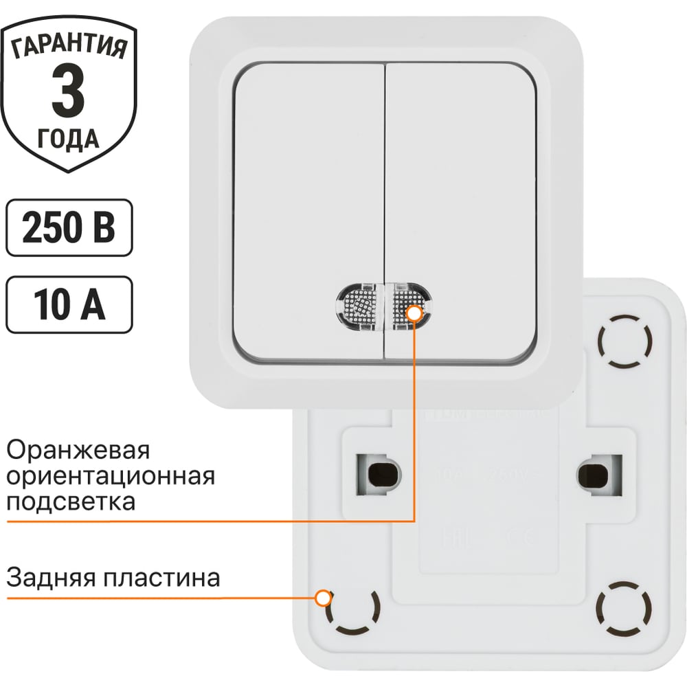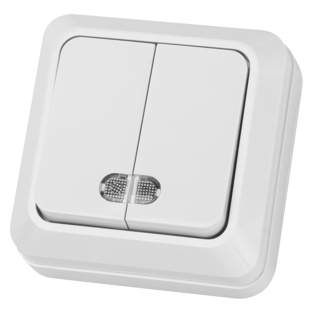 Выключатель TDM ELECTRIC 2-кл. открытой установки с подсветкой IP20 10А, белый серия "Ладога" SQ1801-0007