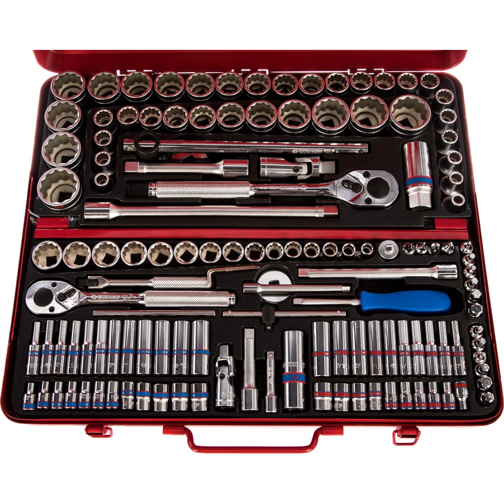 Набор торцевых головок с принадлежностями (1/4"&3/8"&1/2", двенадцатигранные, 4-32 мм, 5/32"-1&1/4", 135 предметов) KING TONY 9033CR