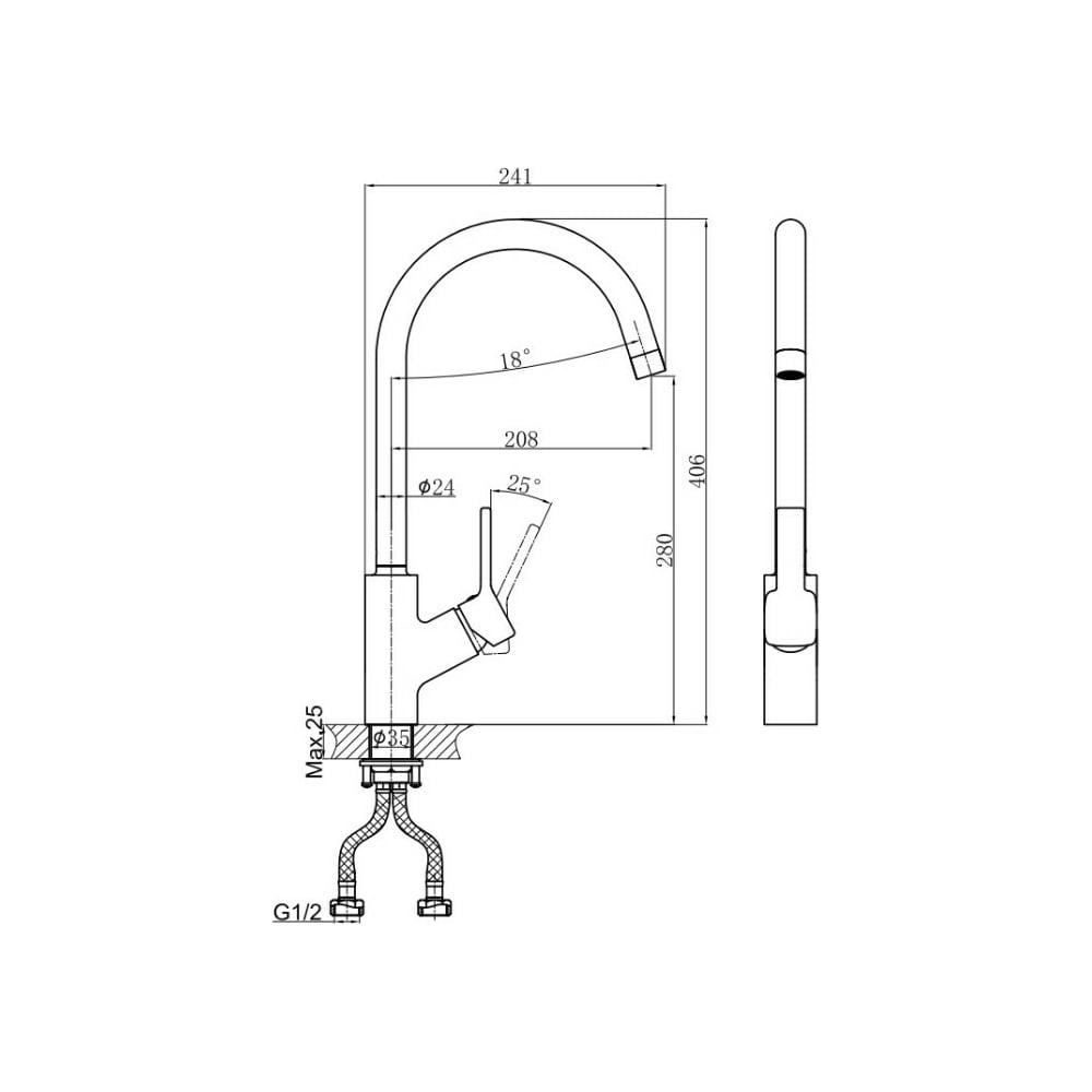 | Подводка в комплекте | гибкая |