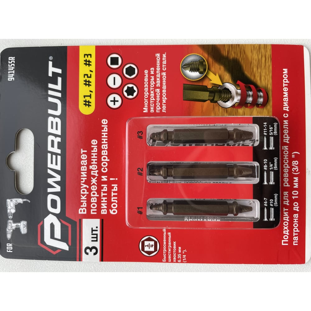 Набор экстракторов для болтов и винтов TORGWIN powerbuilt 3 шт. двухсторонние 941455R