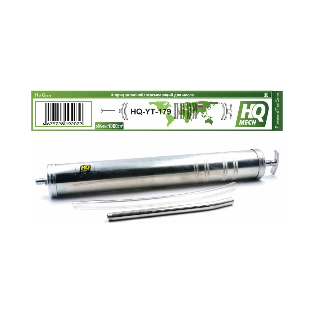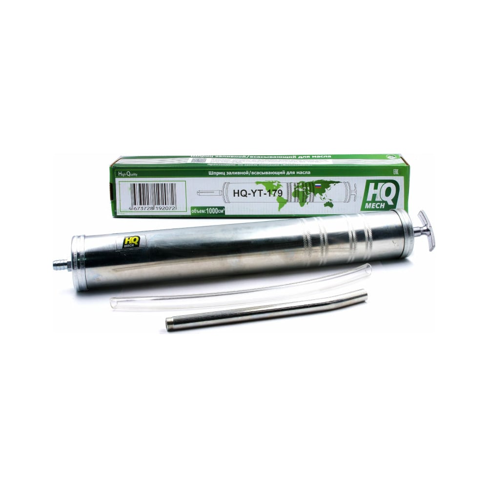 Шприц для жидкой смазки (масла) HQ-mech 1000 мл, заливной/всасывающий, оцинкованное покрытие, 2 УТ000002066