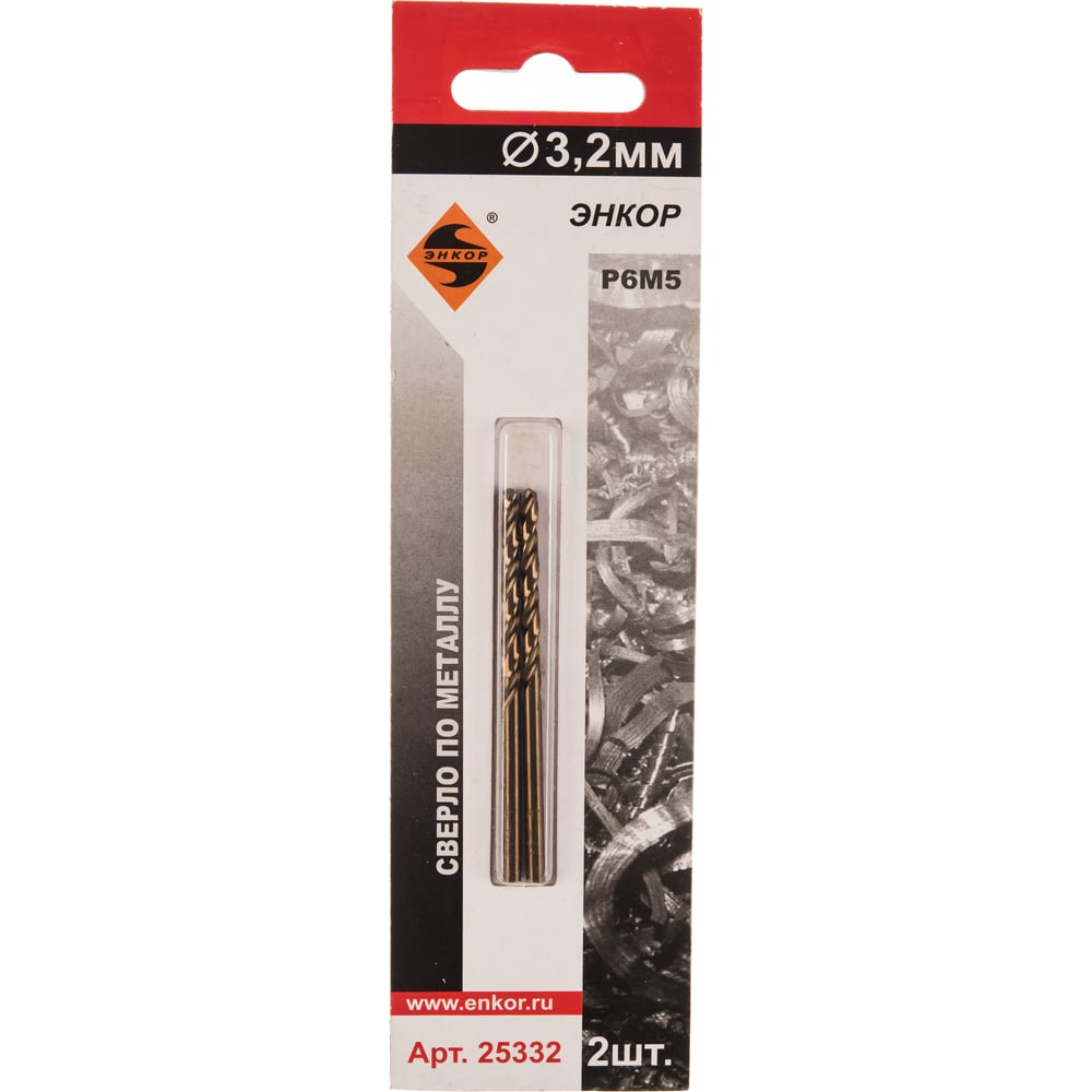 Сверло по металлу (3.2 мм; 2 шт; блистер) Р6М5 Энкор 25332