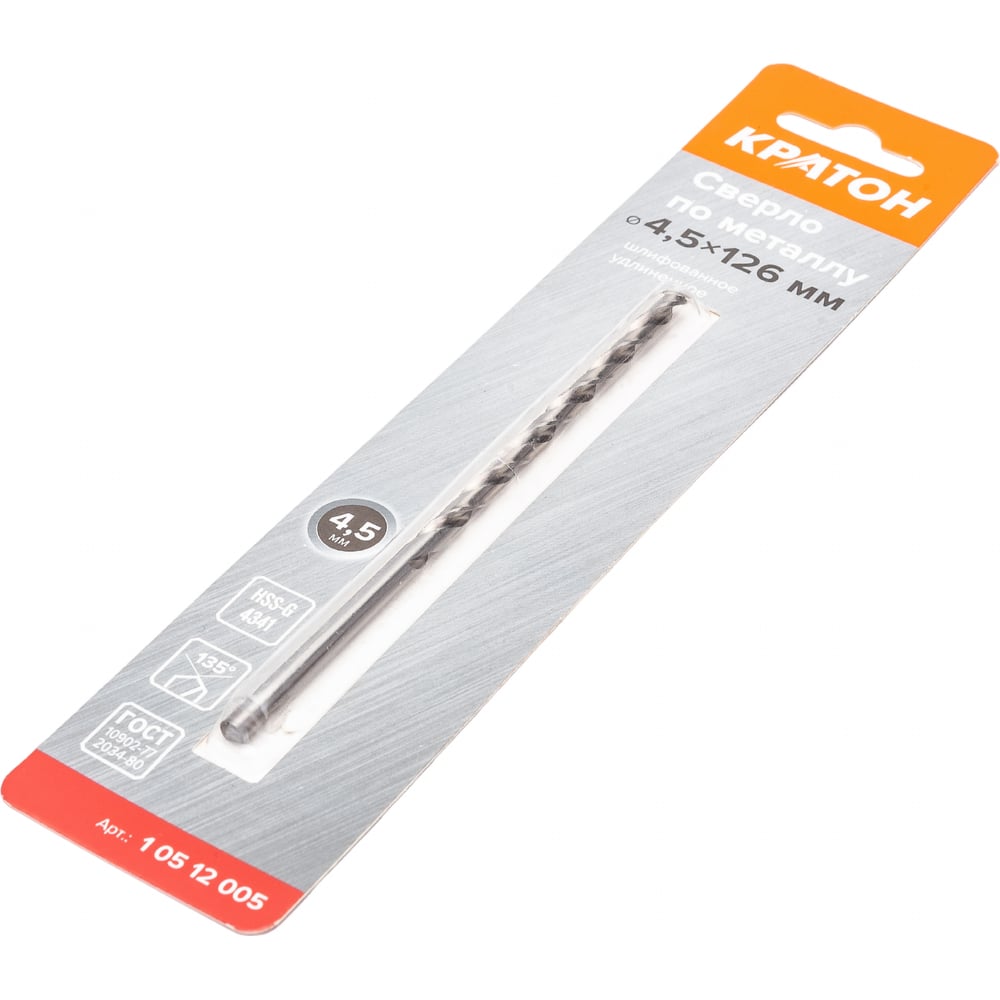 Сверло по металлу шлифованное удлиненное (4.5x126 мм) Кратон 1 05 12 005