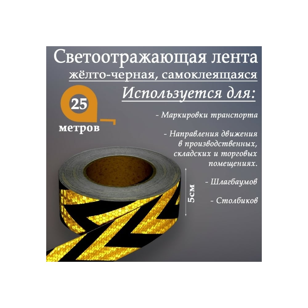 Светоотражающая самоклеящаяся лента СИМАЛЕНД желто-черная, 5 см х 25 м 4708042