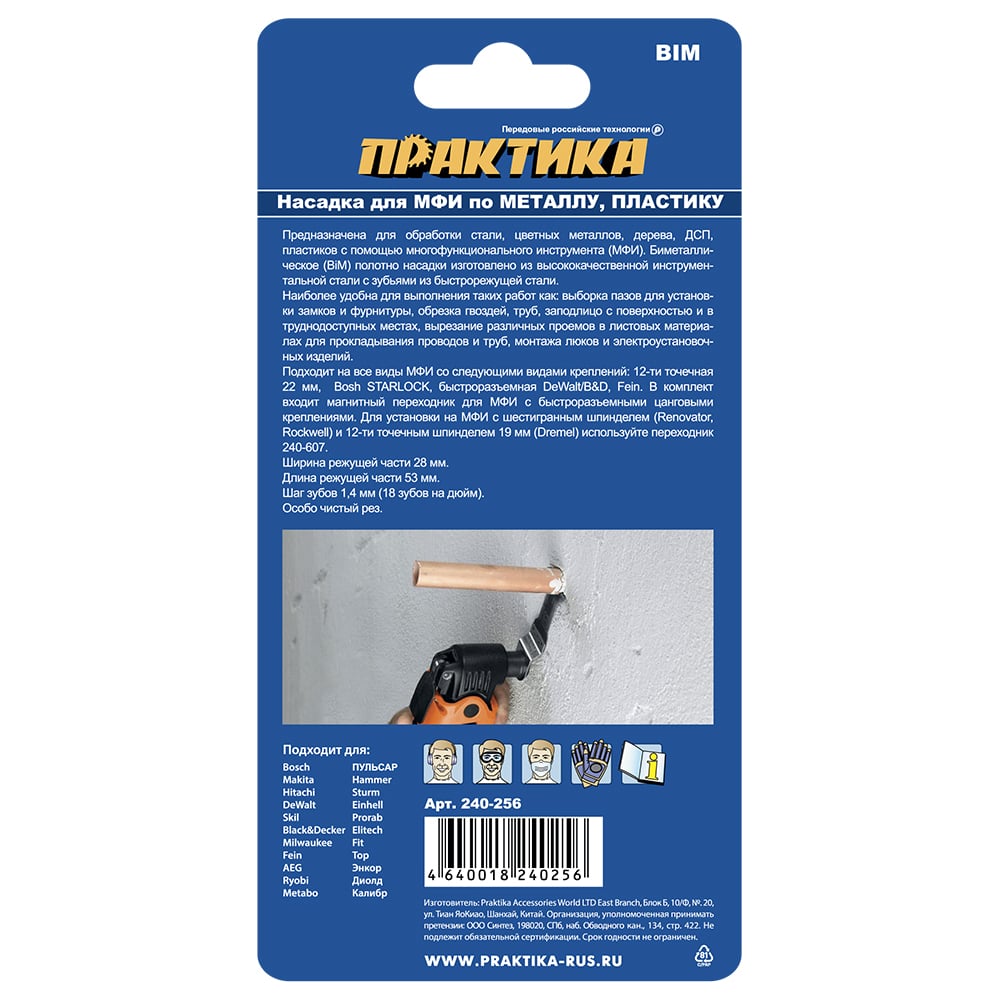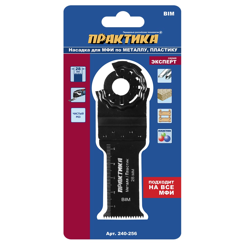 Режущая насадка для МФИ, по металлу и дереву ПРАКТИКА Т-образная, BiM, 28 мм, мелкий зуб 240-256