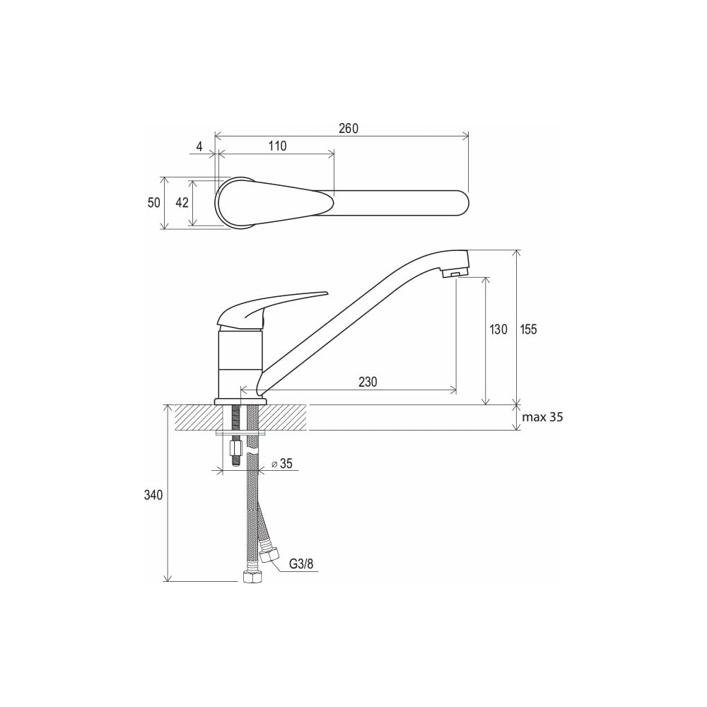 | Высота смесителя | 155 мм |
