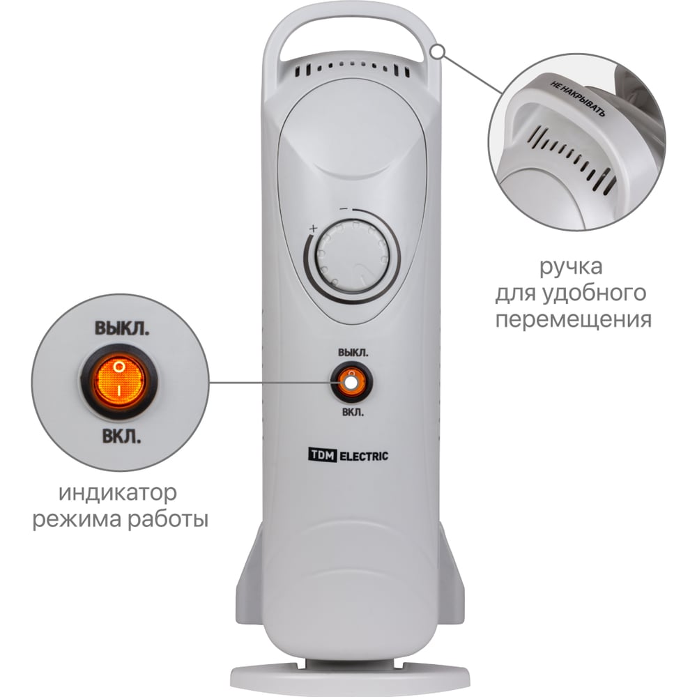 Масляный обогреватель TDM ELECTRIC МИНИ-11, 1200 Вт, 11 секций, термостат, SQ2501-0910