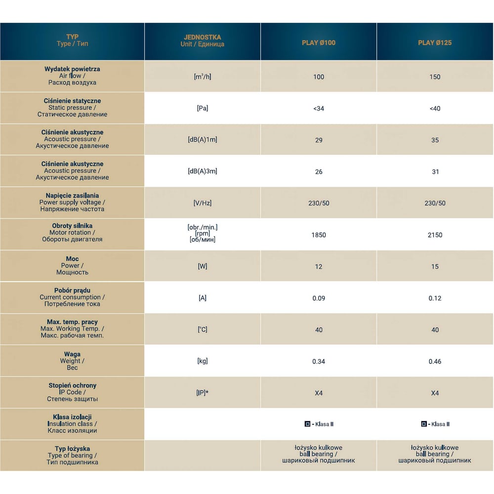 Габариты без упаковки 171х171х88 мм Высота 171 мм Ширина 171 мм Цвет белый Тип установки настенный Вес нетто 0.45 кг Материал корпуса ABS-пластик Серия PLAY Напряжение 220 В Мощность (Вт) 15 Класс защиты IPХ4 Min температура эксплуатации 0 °С Max температура эксплуатации 40 °С Производительность 150 м³/ч Количество скоростей 1 Диаметр воздуховодов 125 мм Уровень шума 35 дБ Наличие датчика влажности нет Наличие таймера нет Москитная сетка нет Обратный клапан нет Вид канала круглый Тип выключателя нет Защита от перегрева да Тип конструкции осевой Брызгозащищенное исполнение есть Съемная панель да Монтажная глубина 63 мм Тип подшипника шариковый Наличие датчика движения нет