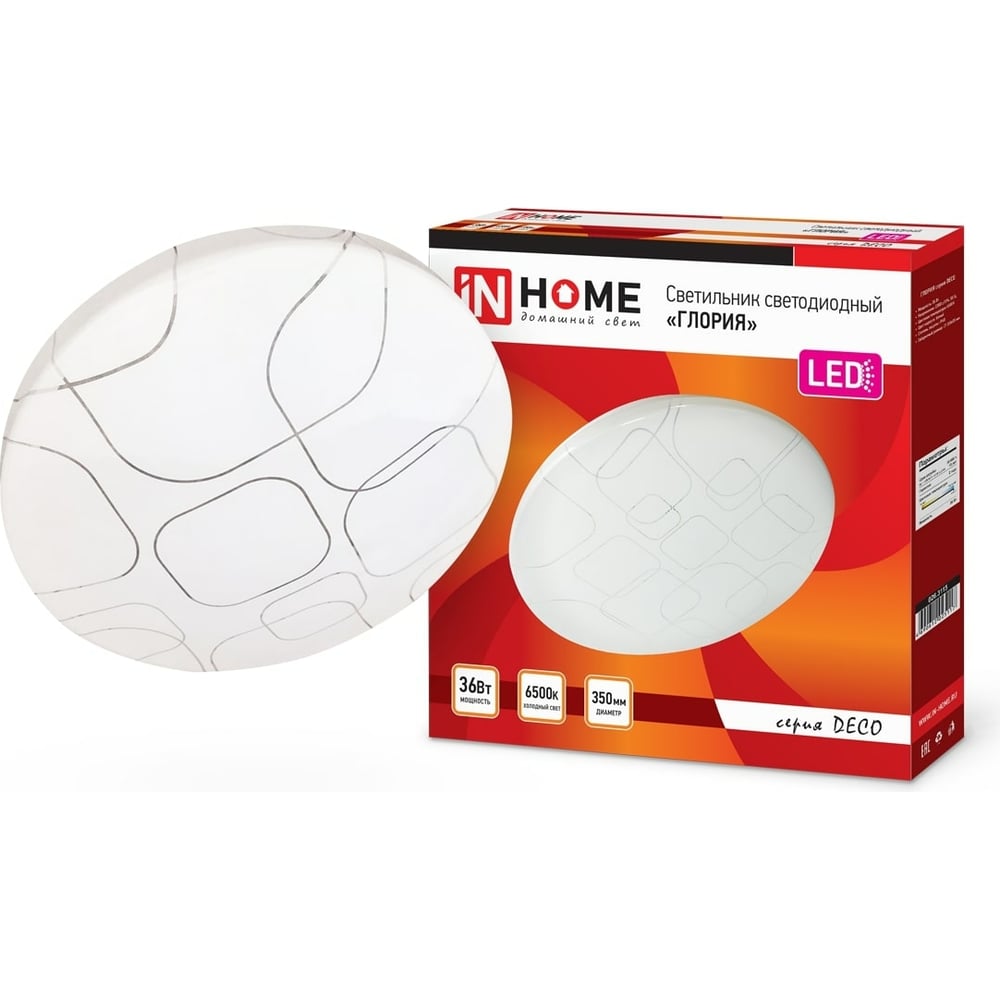 Светодиодный светильник IN HOME серии DECO 36Вт 230В 6500К 2340лм 350мм ГЛОРИЯ 4690612025117