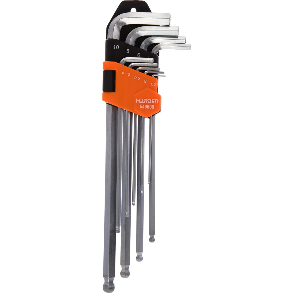 Набор имбусовых ключей HARDEN HEX, с шарообразной головкой, 23 см, CRV, 9 шт. 540609