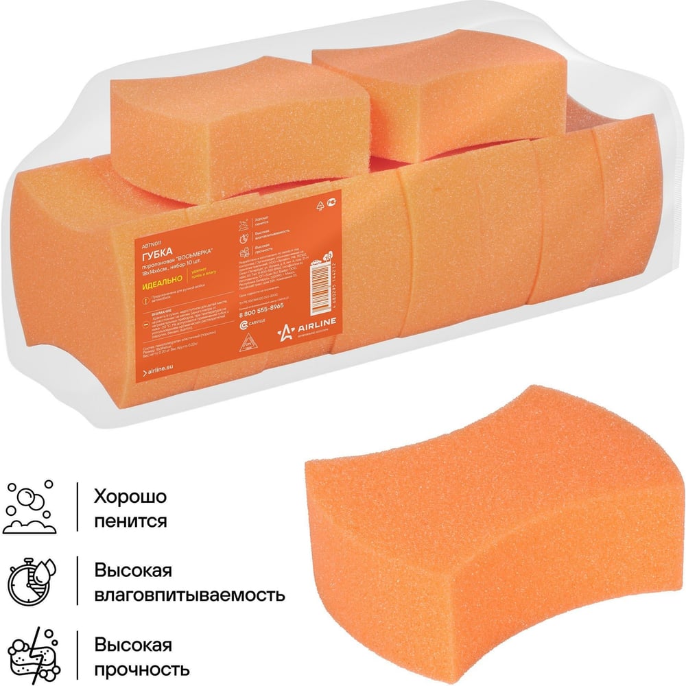 Поролоновая губка Airline Восьмерка 18х14х6, набор 10 шт. ABTN011