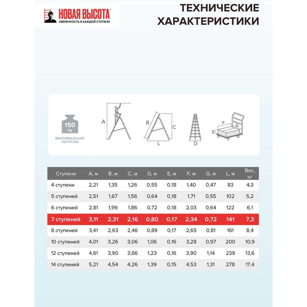 Садовая стремянка Новая Высота 1x7 ступеней 3191107