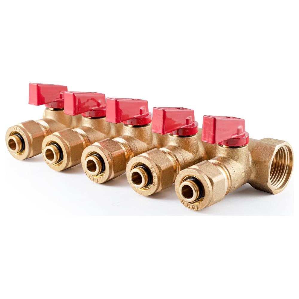 Коллектор с шаровыми кранами PROFACTOR в/н 3/4" х 5 вых 16 цанга PF MVP 266.5